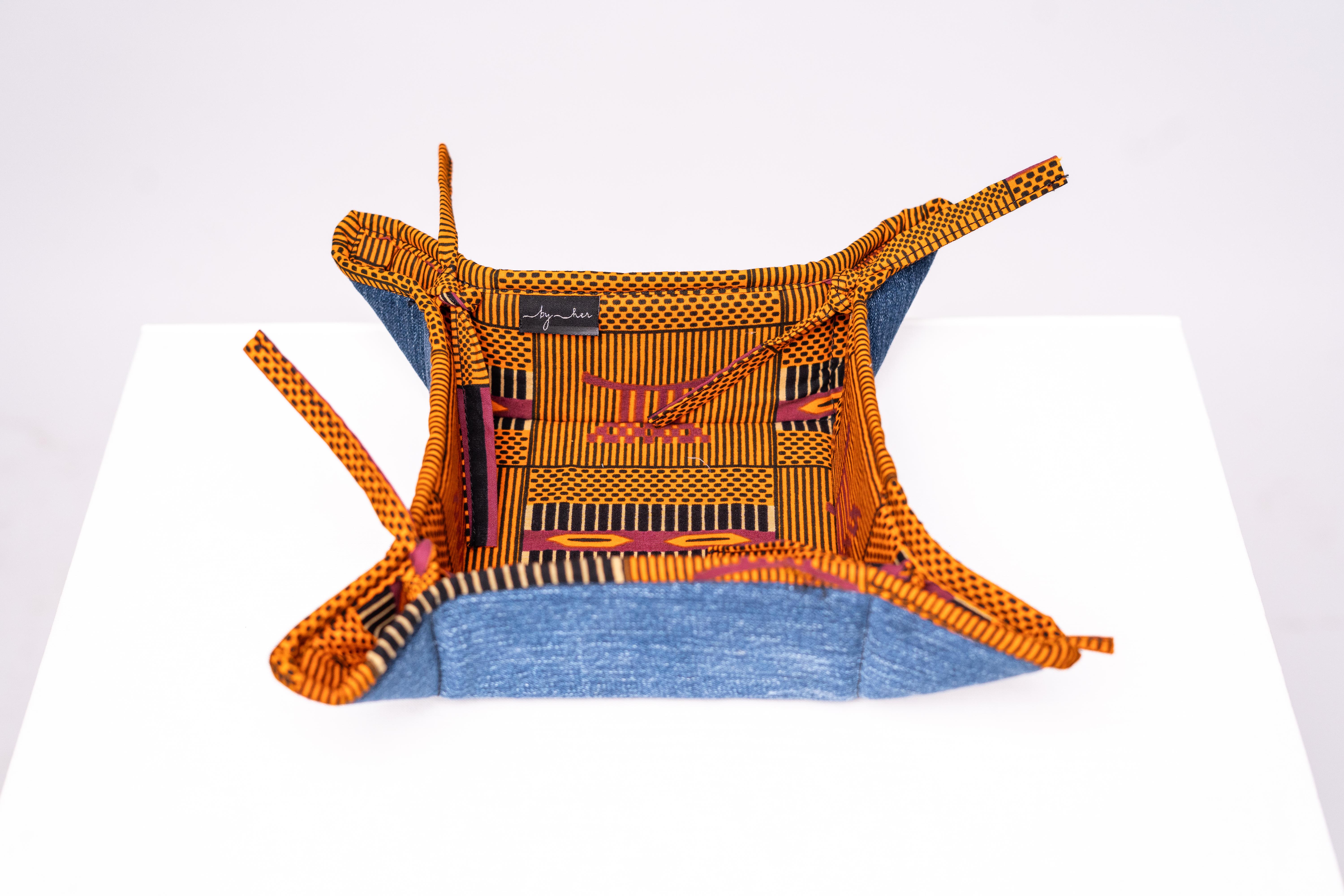 Join us in our 3Rs Campaign: Reduce, Reuse and Recycle; by getting yourself your next favourite storage, organiser or breadbasket. !! !! As the jeans material is recycled, it may have a slightly difference of colour ✔️Made from upcycled denim and a touch of High Quality African Print Cotton ✔️Light weight, Durable ✔️For storage or as a bread basket ❤️When purchased 5% of our profit goes into the fight against FGM in Kenya